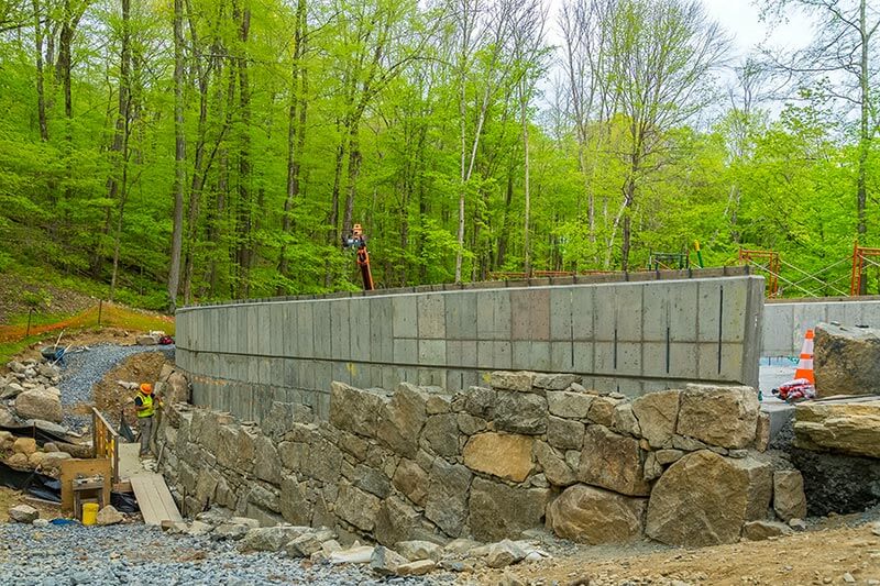 According to the Historical Society of Rockland County, stone for the estate was sourced directly from the property. There is evidence of quarrying on the northeast corner of the property. A stone bridge on-site, likely dating to around 1900, was first built to transport materials during the building of the historic manor on Table Rock Estate. Today, fragments of that vision were discovered on the Audio/Video Center property.